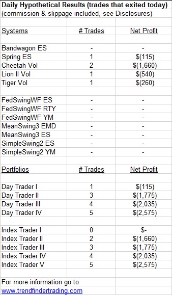 Trendfinder’s emini futures trading systems did not have any trades today.