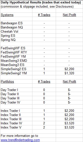 There were a handful of trades this week. SimpleSwing2 YM was the big winner.