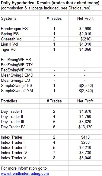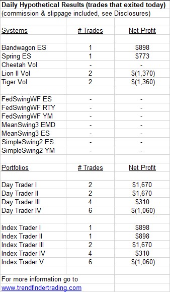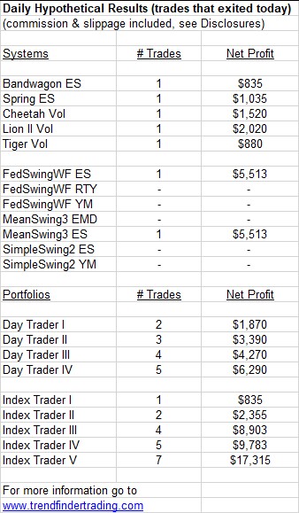 Another very good day for these systems. Every intraday system had a long trade. Two swing systems exited a profitable long trade.