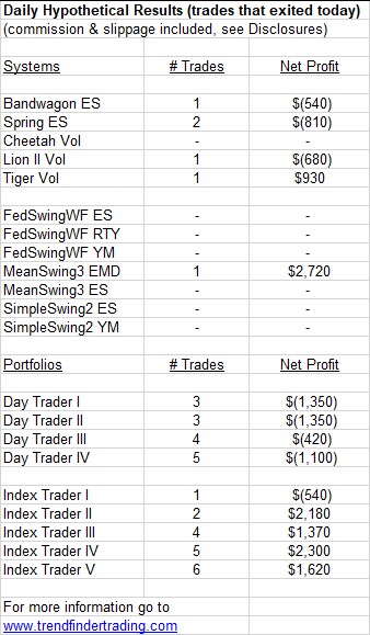 This is the kind of day where the intraday systems can really clean up. All the intraday systems had short trades today. SimpleSwing2 was stopped out of long trades.