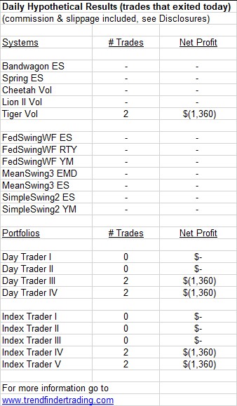 Trendfinder’s emini futures trading systems did not have any trades today.