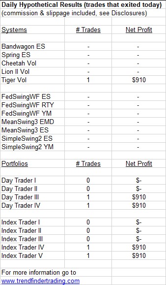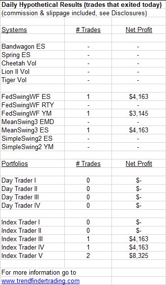 Trendfinder’s emini futures trading systems did not have any trades today.