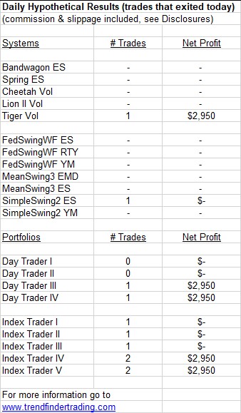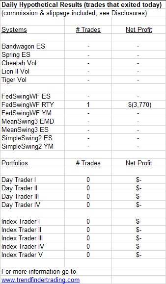 Trendfinder’s emini futures trading systems did not have any trades today.