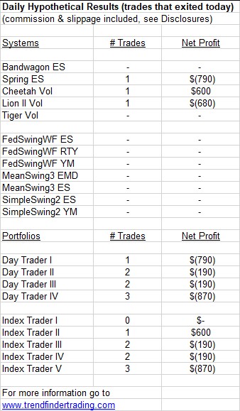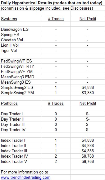 Trendfinder’s emini futures trading systems did not have any trades today.