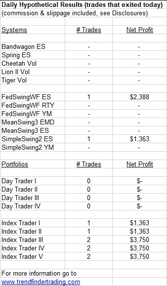 Trendfinder’s emini futures trading systems did not have any trades today.
