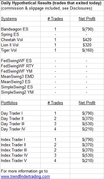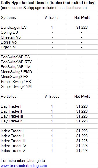 Trendfinder’s emini futures trading systems did not have any trades today.
